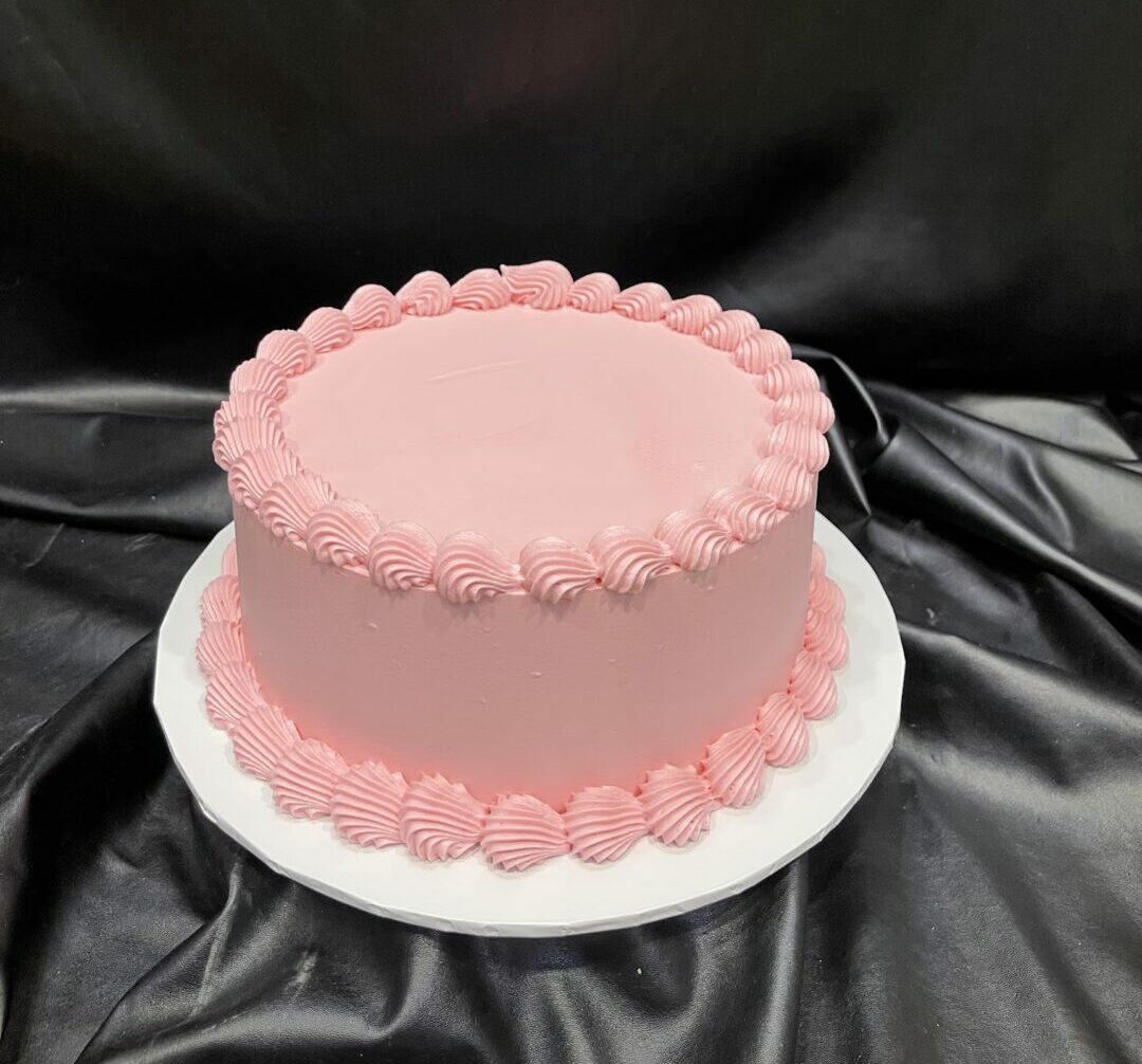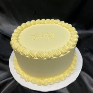 Standard height or extended, round, square or heart shape: Simple and classic vintage buttercream cake with coloured border top and base. Orange colour can be changed – please leave comment at checkout.