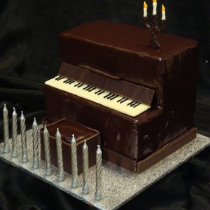 A 3D piano complete with stool, keys and candelabra. A really fantastic cake for all ages that love piano.