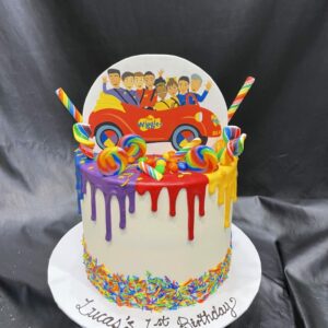 A cake covered in textured buttercream with a printed edible image on icing, and ribbon with bow. Ribbon colour can be changed to match image – please advise in Order Notes section at Checkout. Please upload image of your choice if you do not want the unicorn.