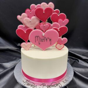 Cluster of 20 Pink Hearts on Smooth Buttercream