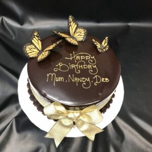 Trio of Butterflies on Dark Ganache with Ribbon